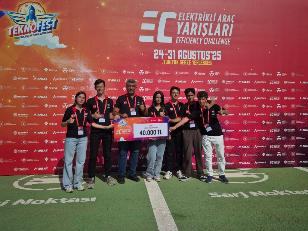 İlk kez katıldığımız Teknofest 2025 Efficiency Challange Elektrikli Araç Yarışlarında Sirius takımımız, Orion isimli aracımızla ve en iyi görsel tasarım kategorisinde birinci ve en iyi ivmelenme (Drag) kategorisinde üçüncü olmuştur. Takım danışmanı Müdür Başyardımcımız Mehmet Alper Yolcu'ya ve Sirius takımımıza teşekkür eder, başarılarının devamını dileriz.